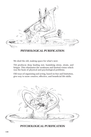 146PHYSIOLOGICAL PURIFICATIONPSYCHOLOGICAL PURIFICATIONWe shed the old, making space for what%u2019s next.TM produces deep healing rest, banishing stress, strain, and fatigue. This eliminates the weakness and limited vision which was the basis of physical and psychological problems. Old ways of organizing and acting, based on fear and limitation, give way to more creative, effective, and beneficial life skills.